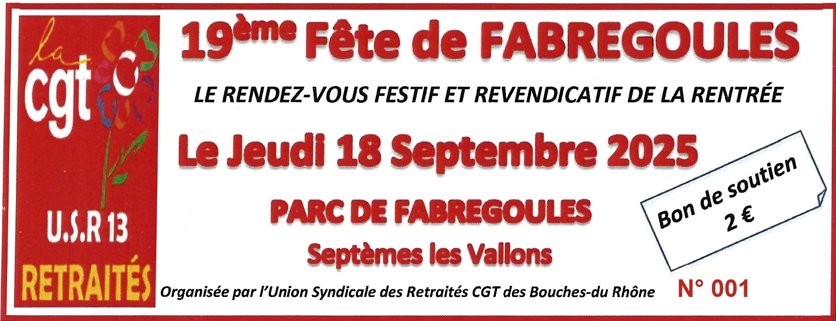 Pour la 19ème année consécutive, l’Union Syndicale des Retraités CGT 13 organise la rentrée sociale des retraités avec une journée revendicatives et festives, le